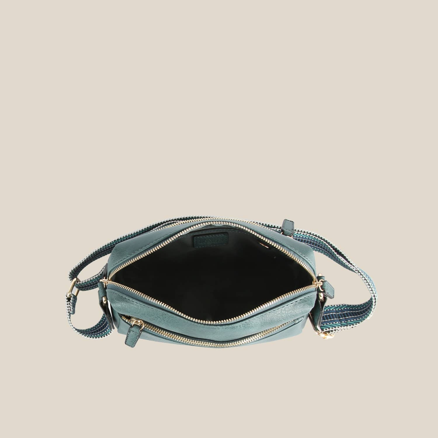 Faux Leather Zip Top Closure Gold-Tone Hardware Adjustable Shoulder Strap.