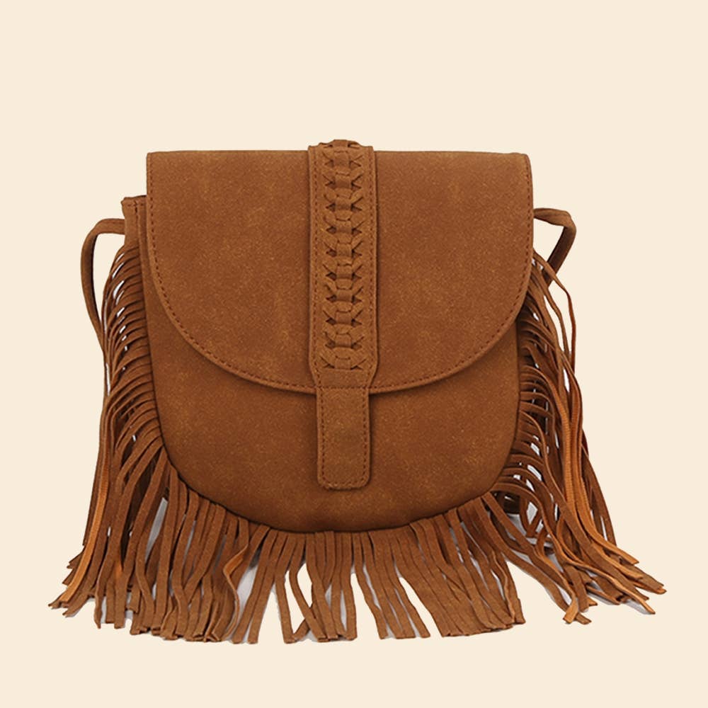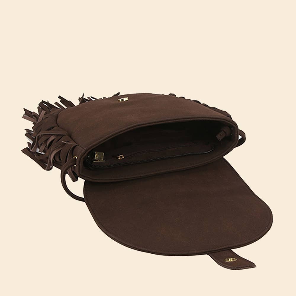 A bold and daring choice, perfect for those who want to stand out from the crowd, this crossbody bag embodies a sophisticated suede fringe flap design. Transform your outfit from ordinary to extraordinary with the touch of elegance provided by this versatile crossbody bag.