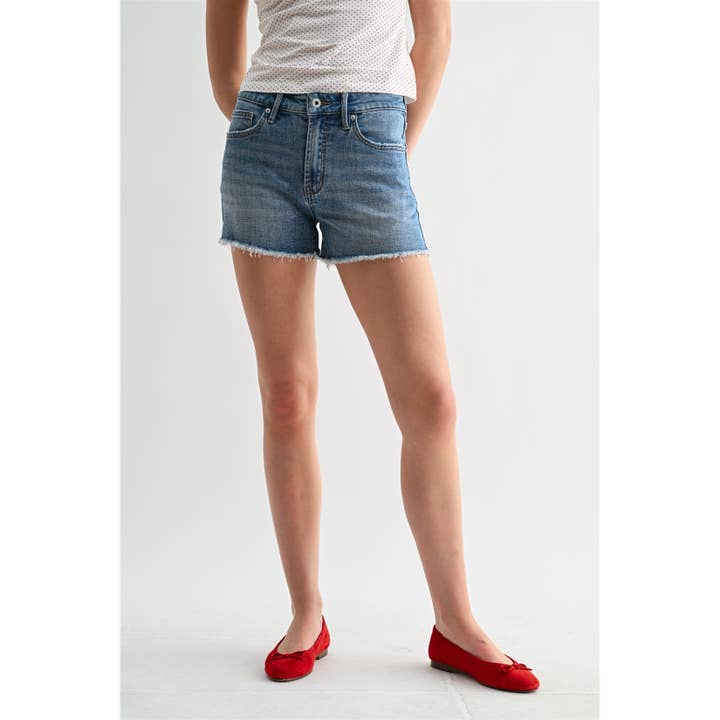 Elevate your casual wardrobe with these high-rise shorts that sit comfortably at the waist and hit mid-thigh. The raw hem adds an effortlessly cool, unfinished edge—perfect for pairing with crop tops, oversized tees, or tucked-in blouses. Versatile enough for weekend errands or laid-back hangouts, they're a modern staple that works with sneakers, sandals, or boots!