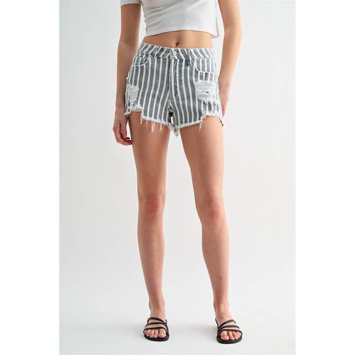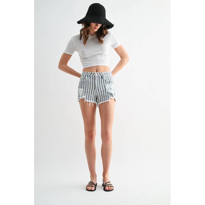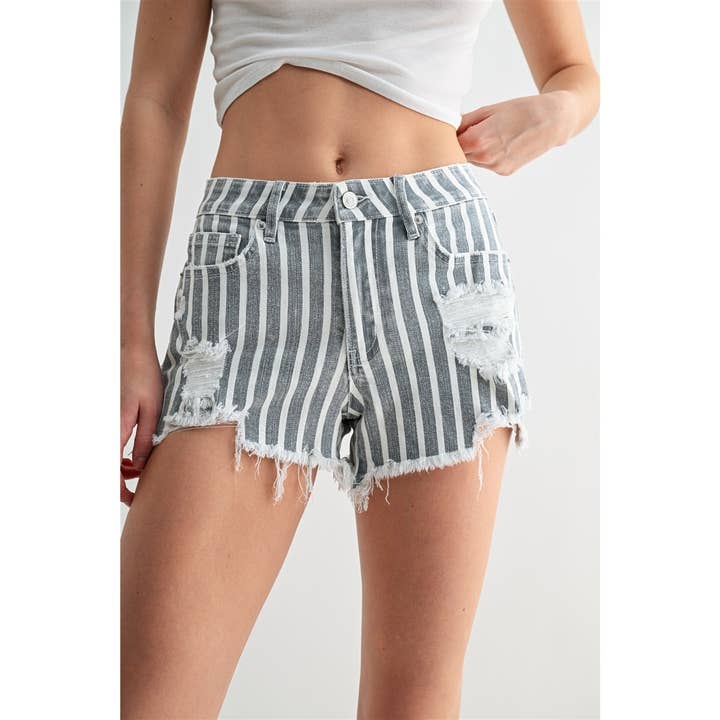 These striped high rise shorts bring an easy, put-together feel to your everyday style. The high waistband sits comfortably at your natural waist, creating a flattering silhouette while the classic stripes add visual interest without demanding much thought. Slip them on with sneakers for weekend errands, pair them with a tucked-in blouse for a polished brunch look, or dress them down with a simple tank. Made for those days when you want something that feels effortless but still looks intentional—the kind of piece you reach for again and again.