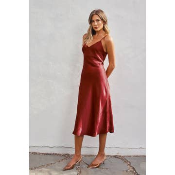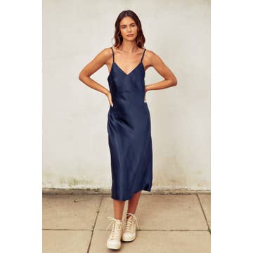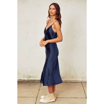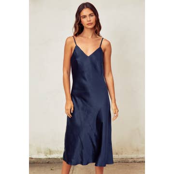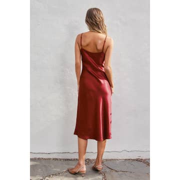 Slip into effortless elegance with this satin midi dress that's anything but basic. The luxurious bias-cut hem creates a flattering drape that moves with you, while adjustable shoulder straps let you customize the perfect fit. Whether you're dressing up for a night out or elevating your everyday style, this versatile piece transitions seamlessly from season to season. Pure satin sophistication with a playful twist.