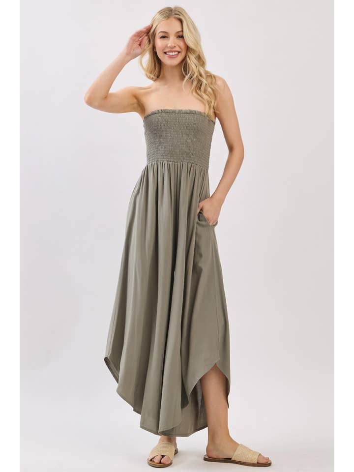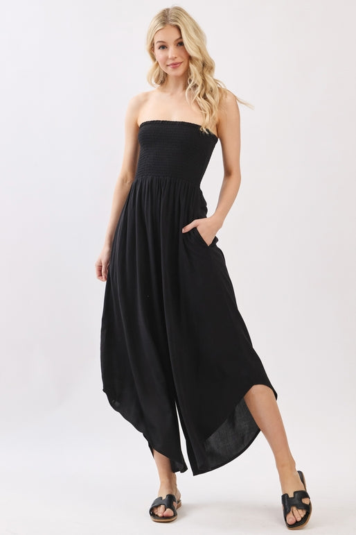 Your new favorite piece just arrived! This jumpsuit features flattering front and back smocking, a handy side pocket, and a playful rounded hem. Simple, stylish, and ready for anything—one outfit, infinite possibilities.