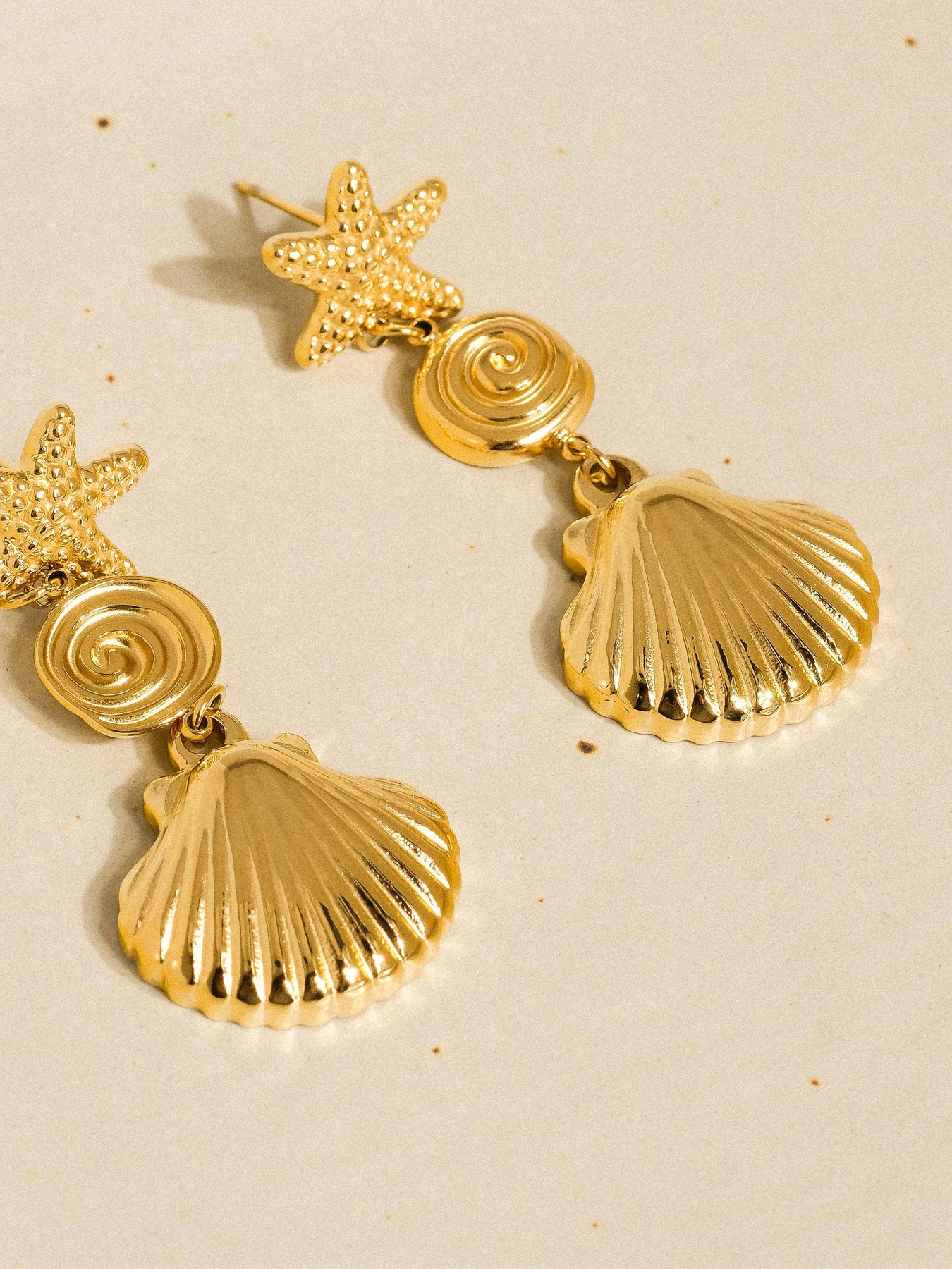 Vesta 18K Gold Non-Tarnish Summer Seashell Earring