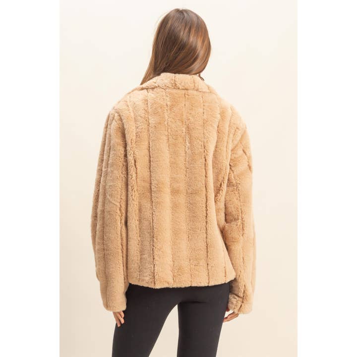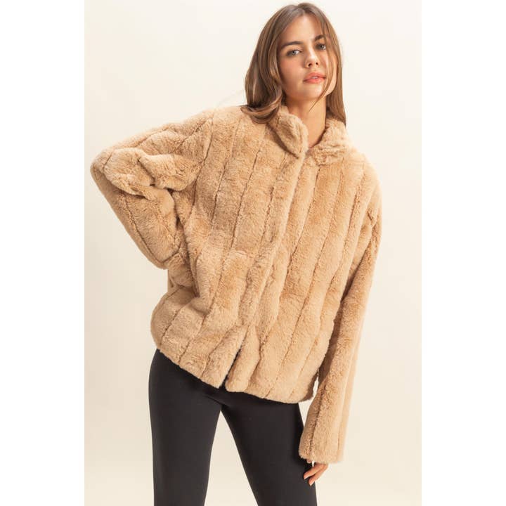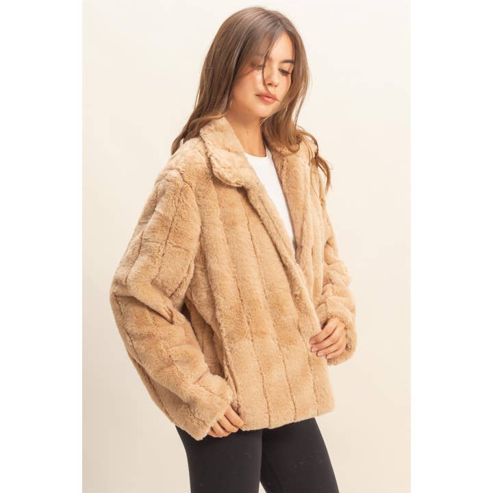 This jacket is a true classic for every wardrobe. Made from faux fur, this warm and cozy number is featured with a collared neck, long sleeves and a classic fit. Hook & eye fastenings down the front complete your fabulous look.