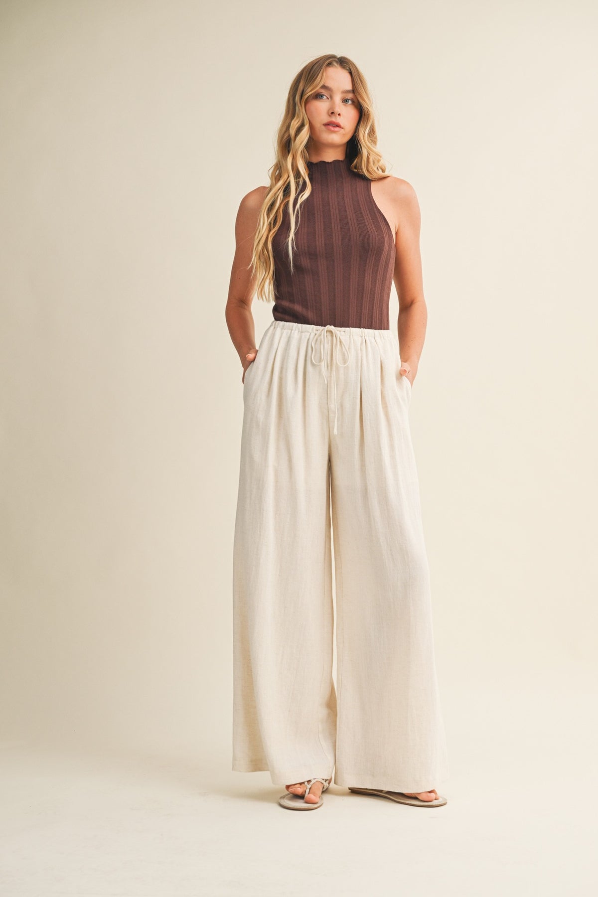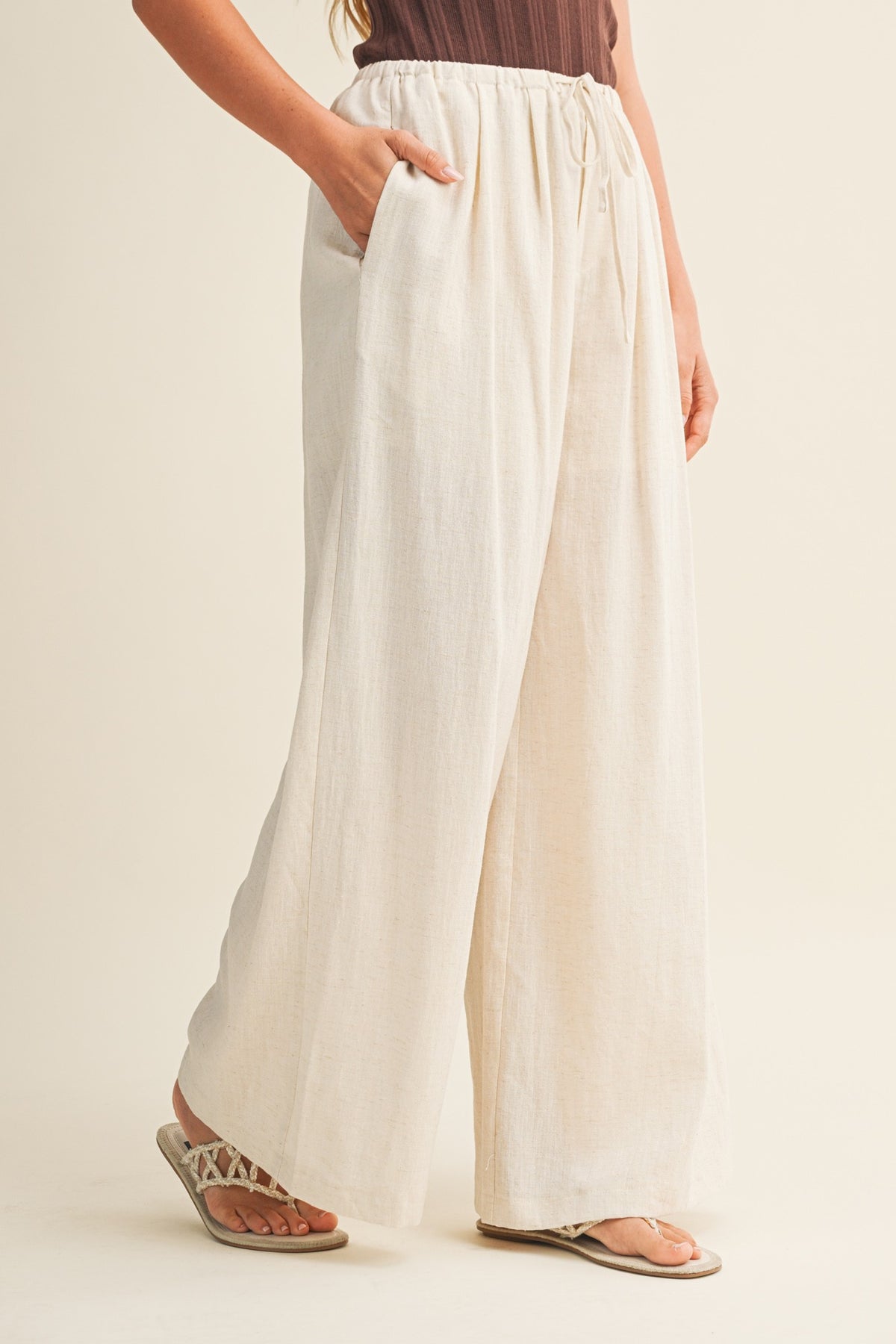Effortlessly chic and undeniably comfortable, these flowy wide pants feature a clever waist tuck detail that flatters every silhouette. The relaxed fit moves with you throughout your day, while the thoughtful tailoring keeps everything in place. Perfect for dressing up or down, they're your new go-to for looking polished without the fuss. Slip them on and feel the difference quality construction makes.