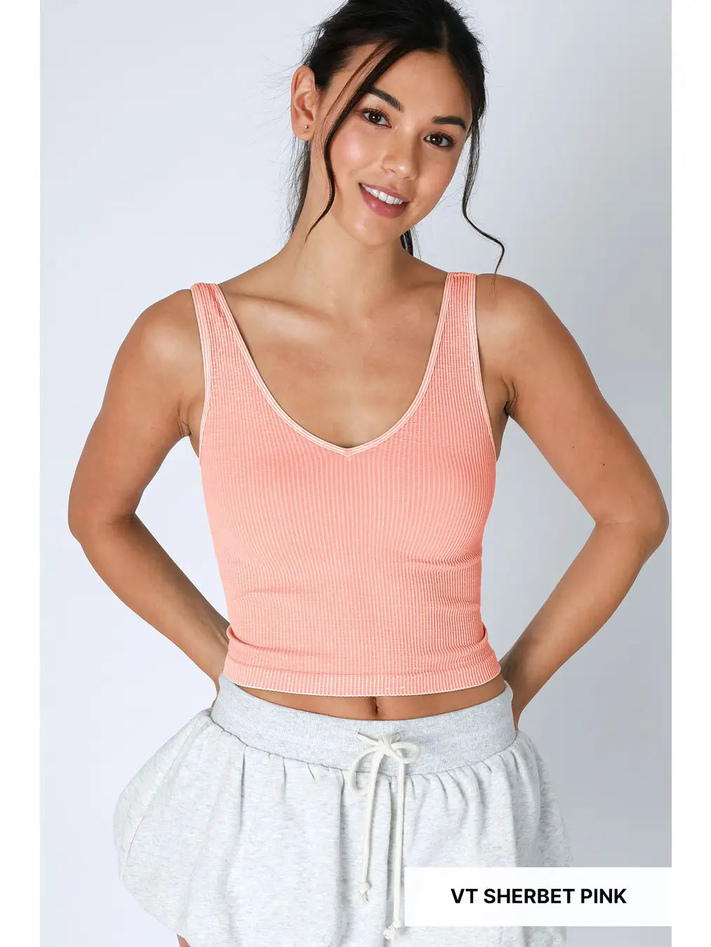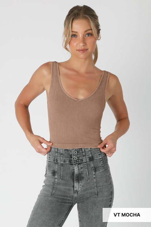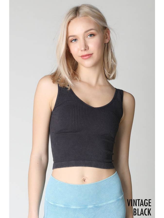This vintage crop top feels like a closet staple you've had forever. The seamless construction means no irritating seams, just soft fabric against your skin. We love the v-neck paired with shoulder straps—it's that sweet spot between comfortable and flattering. The vintage wash gives it real character, like you found it at your favorite thrift store. Throw it on with jeans, a skirt, or layer it under something sheer. It's the kind of piece that works harder than you'd expect.