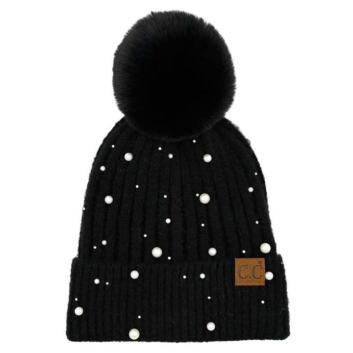C.C Beanie Pearl Embellishments Pom Beanie Hat