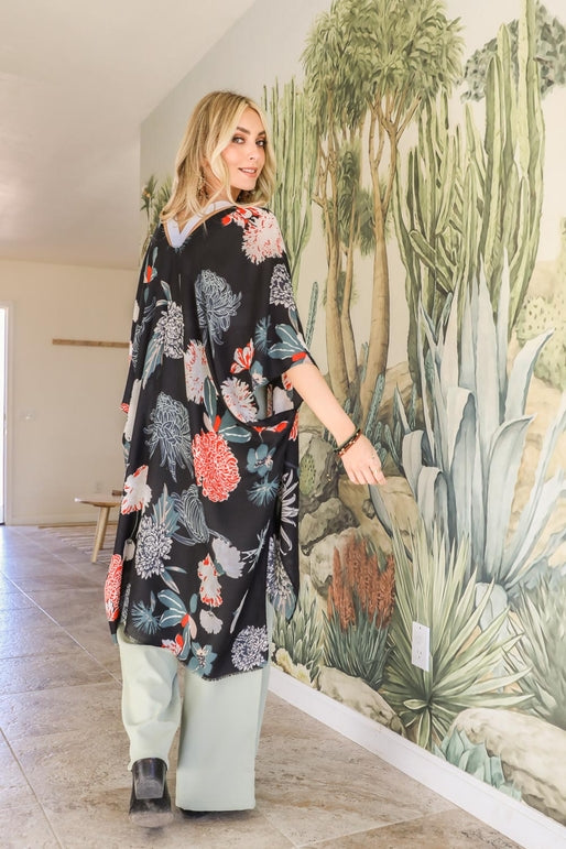 Slip into wanderlust with this breezy floral kimono that's basically a wearable daydream. Crafted from lightweight fabric, it's perfect for layering over your favorite outfits without weighing you down. The vibrant botanical print screams bohemian chic, while the flowing cut lets you move with ease and grace. Throw it on for beach strolls, festival vibes, or those moments when you want to add instant personality to your look. Your new go-to piece for effortless style!
