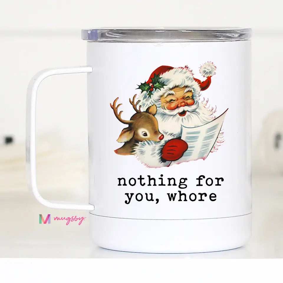 These travel mugs are made from stainless steel, and have a permanent image. Even though these are deemed top rack dishwasher safe, we recommend that you hand wash these to leave a lasting effect and to avoid any rusting if cups are left in the dishwasher. Holds 12 oz. Vacuum sealed plastic lid with a hole in the top. Image is printed on both sides.