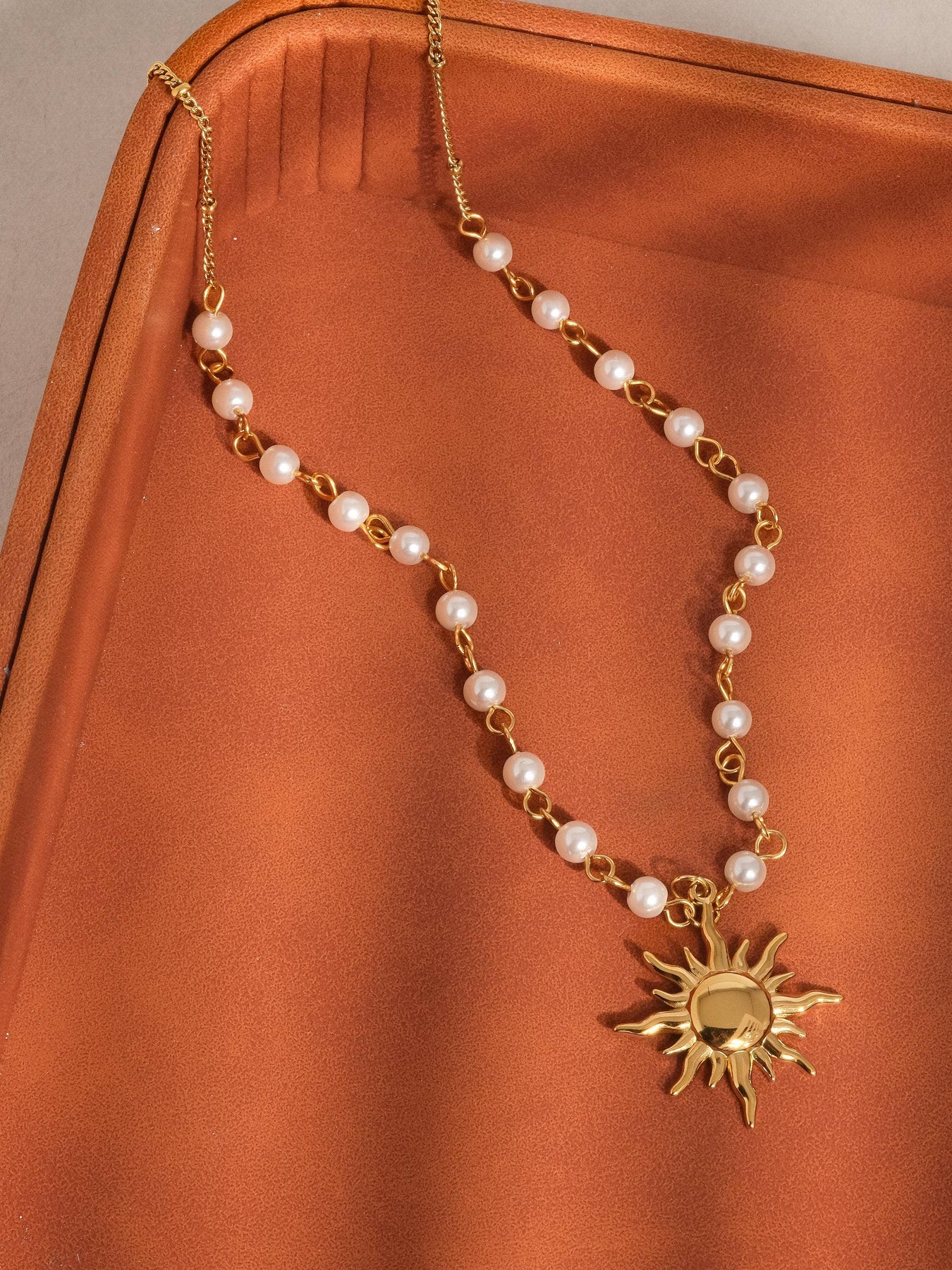 18K Gold Non-Tarnish Sun Beaded Necklace 18K Gold Plating Stainless Steel Pendant Size (inch): 1 Chain Length (inch): 16 Extension Length (inch): 2 - Lead-free, Nickel-safe - Hypoallergenic - Water Resistant