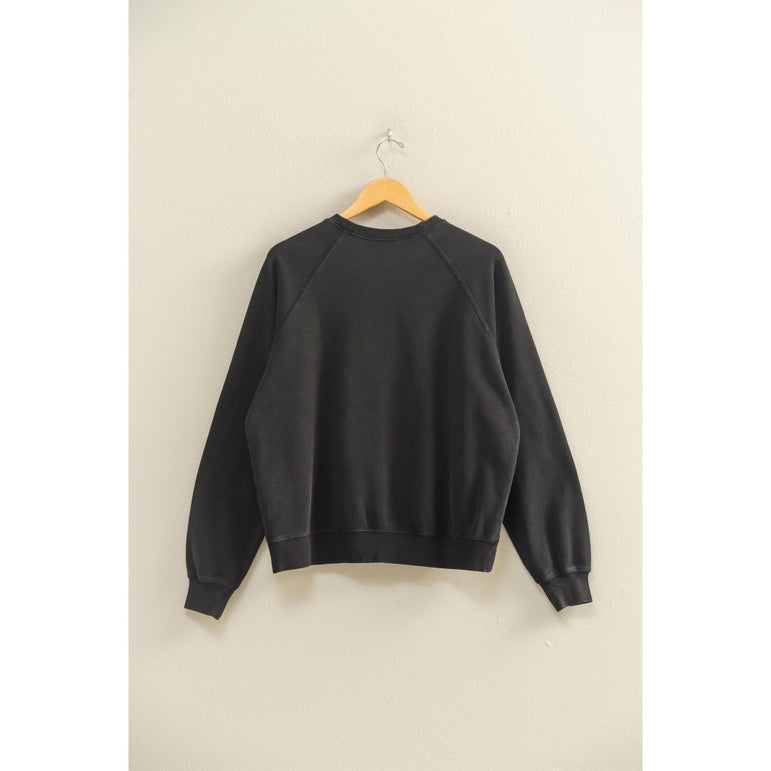 Experience comfort and style with this mineral-washed crew neck sweatshirt. Its versatile fit is perfect for layering over jeans or pairing with skirts, taking you effortlessly from brunch to a night out.