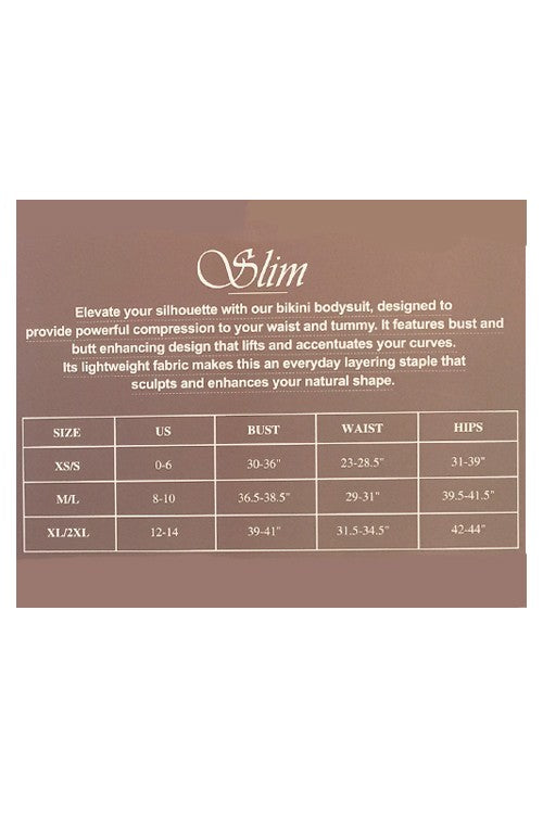 Elevate your silhouette with our bikini bodysuit, designed to provide powerful compression to your waist, and tummy. It features a bust and butt-enhancing design that lifts and accentuates your curves. It's seamless construction and lightweight fabric make this an everyday layering staple that sculpts and enhances your natural shape.